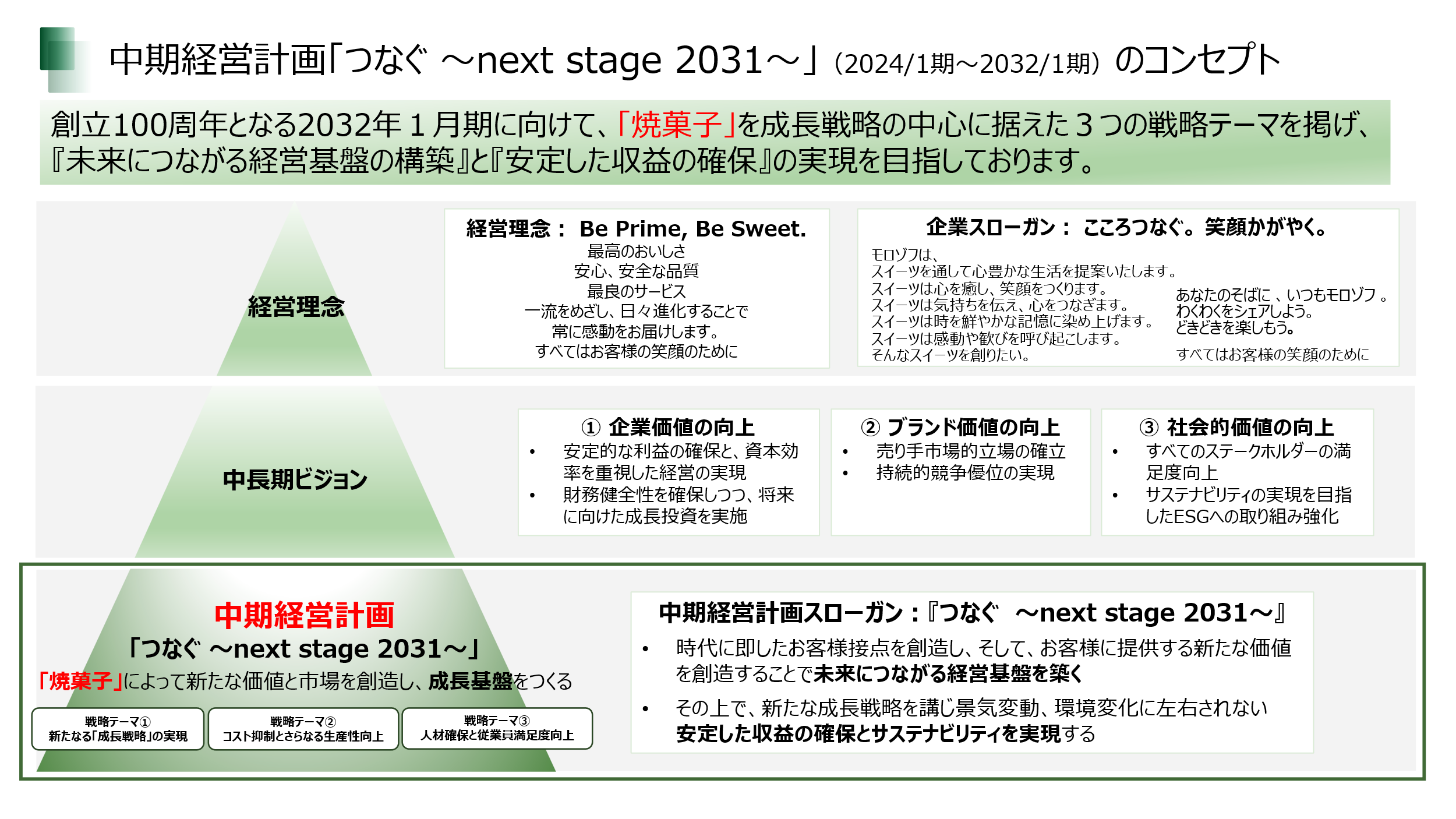 現在、モロゾフは2031年の創立100周年を見据えた中期経営計画「つなぐ ~next stage 2031~」を進めております。